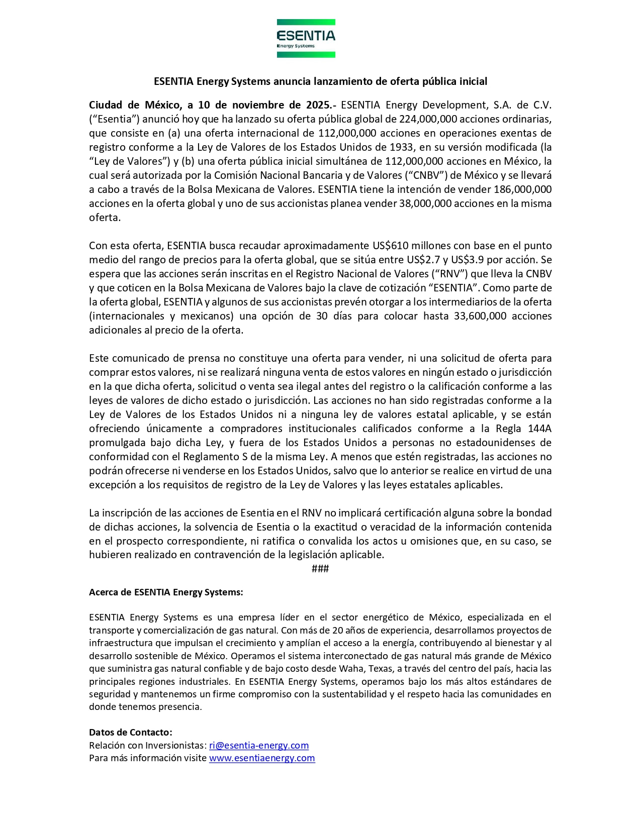We have more than 25 years of experience developing infrastructure projects that have brought benefits and growth to Mexico. ESENTIA Energy Systems is currently operating the Wahalajara System, which is the largest private interconnected natural gas system in Mexico,.